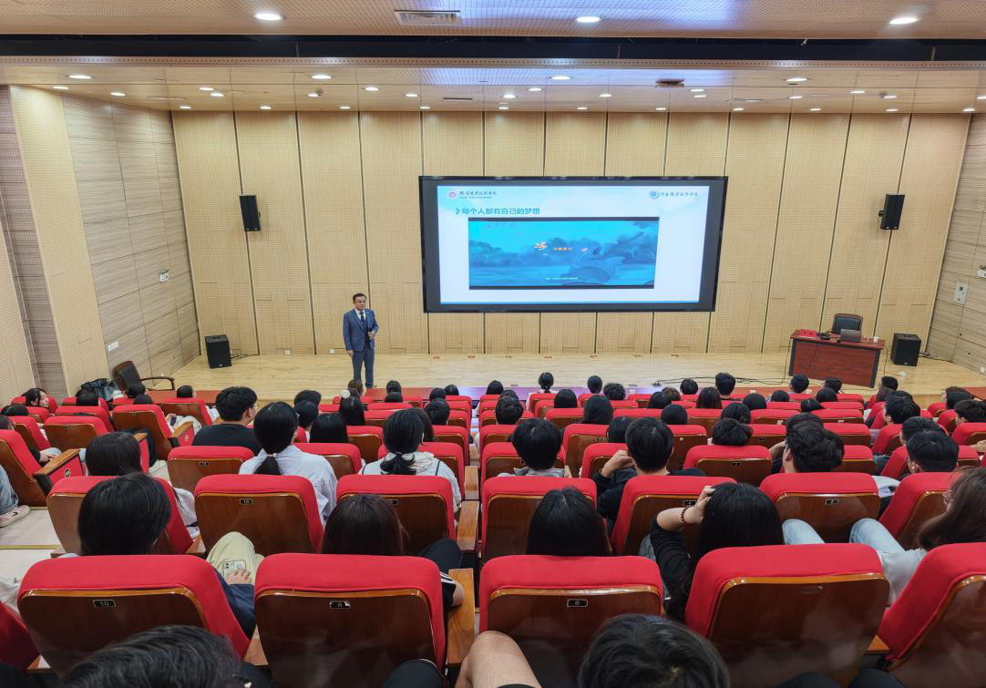 为了帮助2025级大一新生明确职业发展方向,科学规划大学生活,9月25日下午,我校特邀国家职业规划师、河南职业技术学院王林教授在一号报告厅开展了“职业生涯规划第一课——成为有价值的人”专题讲座。各院系新生代表到场聆听,现场氛围热烈,互动频繁。